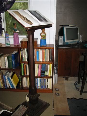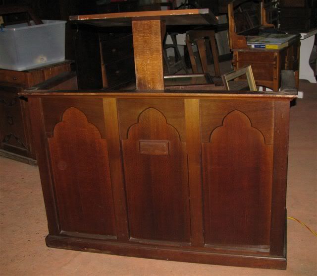 Vi un atril que compré al vuelo (me lo quedo), y D se encaprichó con un púlpito, que quiere transformar en un bar (para vender). Y creo que ya está.